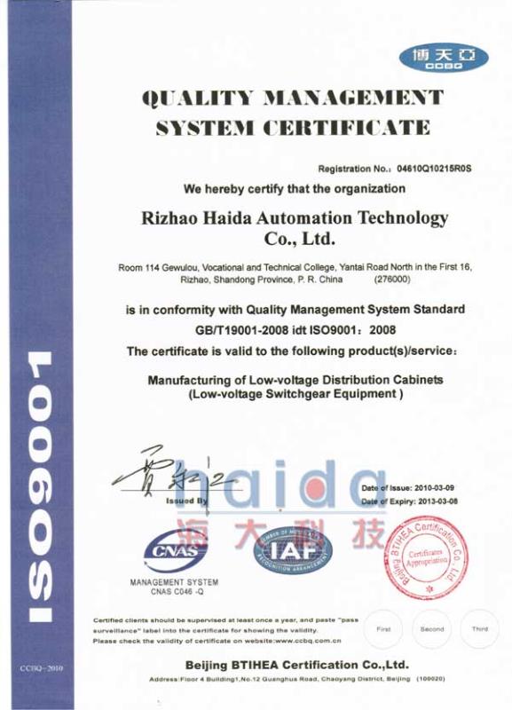 2010年3月9日,我公司獲得質量管理體系(ISO9001:2008)認證證書!