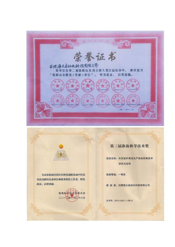 公司自主研發(fā)的“基于物聯(lián)網(wǎng)技術(shù)的綜合生產(chǎn)效率提升系統(tǒng)(OEE)”和“基于物聯(lián)網(wǎng)技術(shù)的能源管理系統(tǒng)”分別被評(píng)為“2014年度日照市科技進(jìn)步一等獎(jiǎng)”、“2013年日照市科技進(jìn)步二等獎(jiǎng)”,同時(shí)該成果也被評(píng)為“山東省優(yōu)秀節(jié)能成果獎(jiǎng)”(魯政辦發(fā)〔2006〕116號(hào))。公司自主研發(fā)的《石灰窯爐清潔生產(chǎn)自動(dòng)控制技術(shù)研究與應(yīng)用》獲得2010年度日照市科學(xué)技術(shù)進(jìn)步獎(jiǎng)二等獎(jiǎng),我公司2010年實(shí)施的《山東五征集團(tuán)有限公司風(fēng)機(jī)、水泵、空壓機(jī)系統(tǒng)節(jié)能項(xiàng)目》被歐盟SWITCH ASIA項(xiàng)目、中國節(jié)能協(xié)會(huì)節(jié)能服務(wù)產(chǎn)業(yè)委員會(huì)、中國標(biāo)準(zhǔn)化研究院評(píng)為“中國電機(jī)系統(tǒng)節(jié)能優(yōu)秀項(xiàng)目”。
