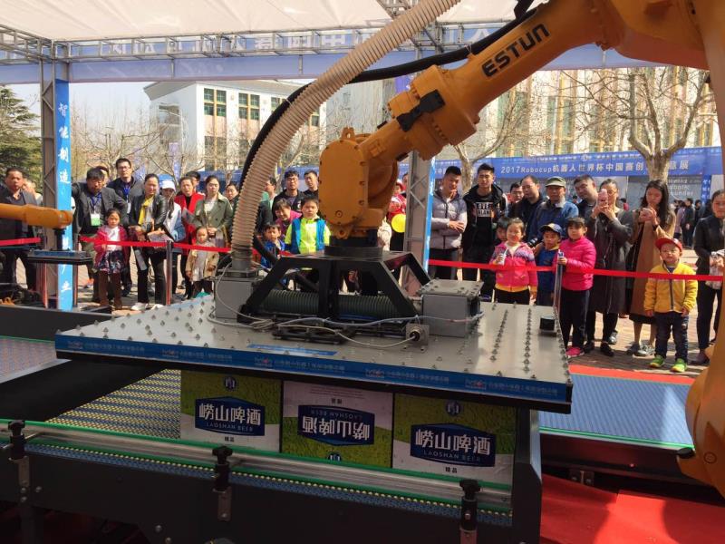 2017年4月2日,2017RoboCup機器人世界杯中國賽暨國家機器人發(fā)展論壇在山東日照開幕,將持續(xù)到4月4日。機器人世界杯是 國際上級別最高、規(guī)模最大、影響最廣泛的機器人賽事。 我應邀參加展出我公司最新研發(fā)的智能碼垛拆垛系統(tǒng),受到了廣大參觀觀眾的圍觀和咨詢。
